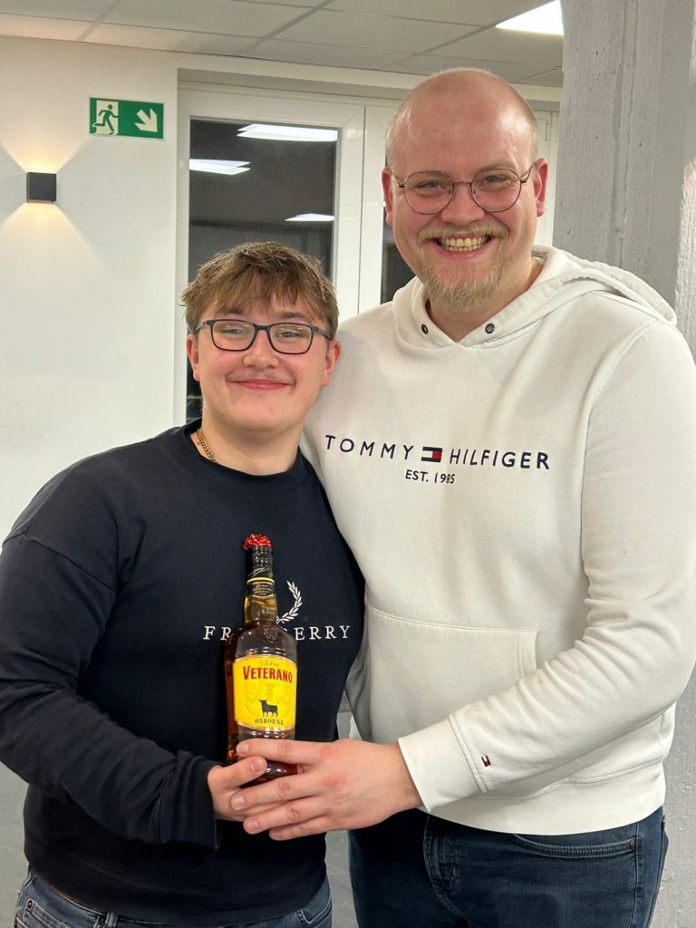 Bei der anschließenden Thekensport-Olympiade konnte sich das Team „Krater“ mit Dominik Fischer und Fabian Gburek gegen Team „die können „nichts““ und Team „Königin“ durchsetzen.